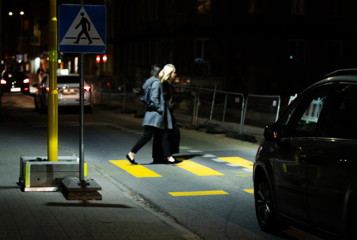 Przenośne doświetlenia wyraźnie zaznaczają obecność pieszych.