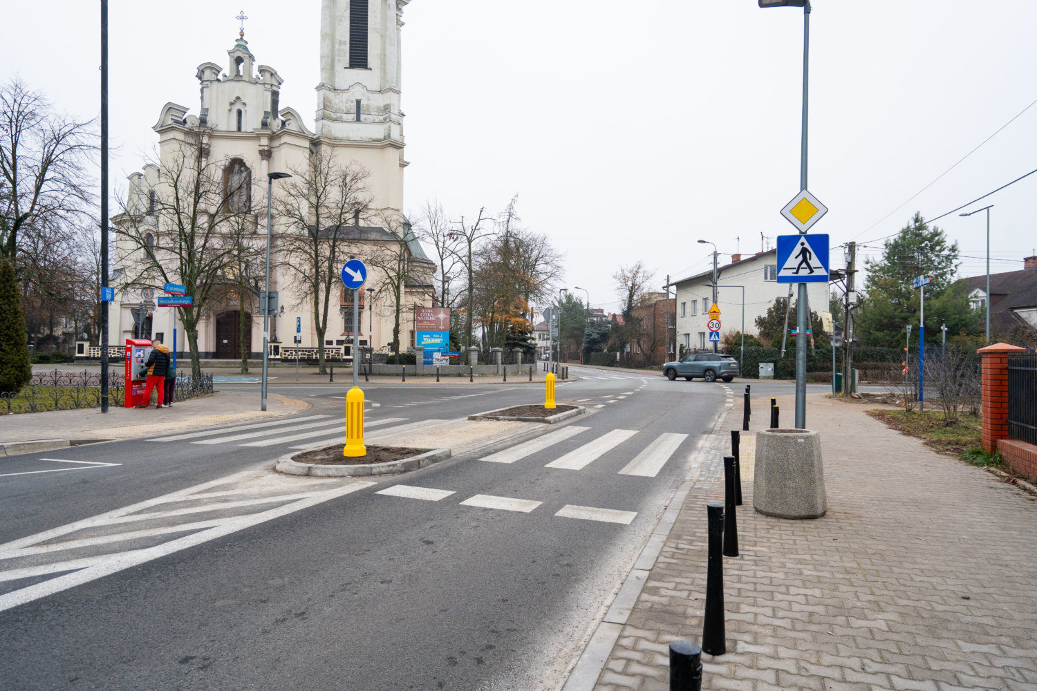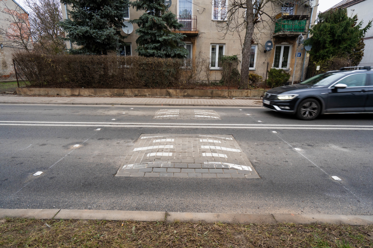 Wdrożone na wspomnianych zebrach zmiany zdecydowanie uspokoją ruch w ich rejonie. Pierwsza znajduje się przy skrzyżowaniu z ul. Przedświt. Po obu jej stronach zamontowaliśmy progi zwalniające. Ponadto osłupkowaliśmy południowo-zachodni róg skrzyżowania. Parkujące tam samochody ograniczały widoczność nadjeżdżającym pojazdom.