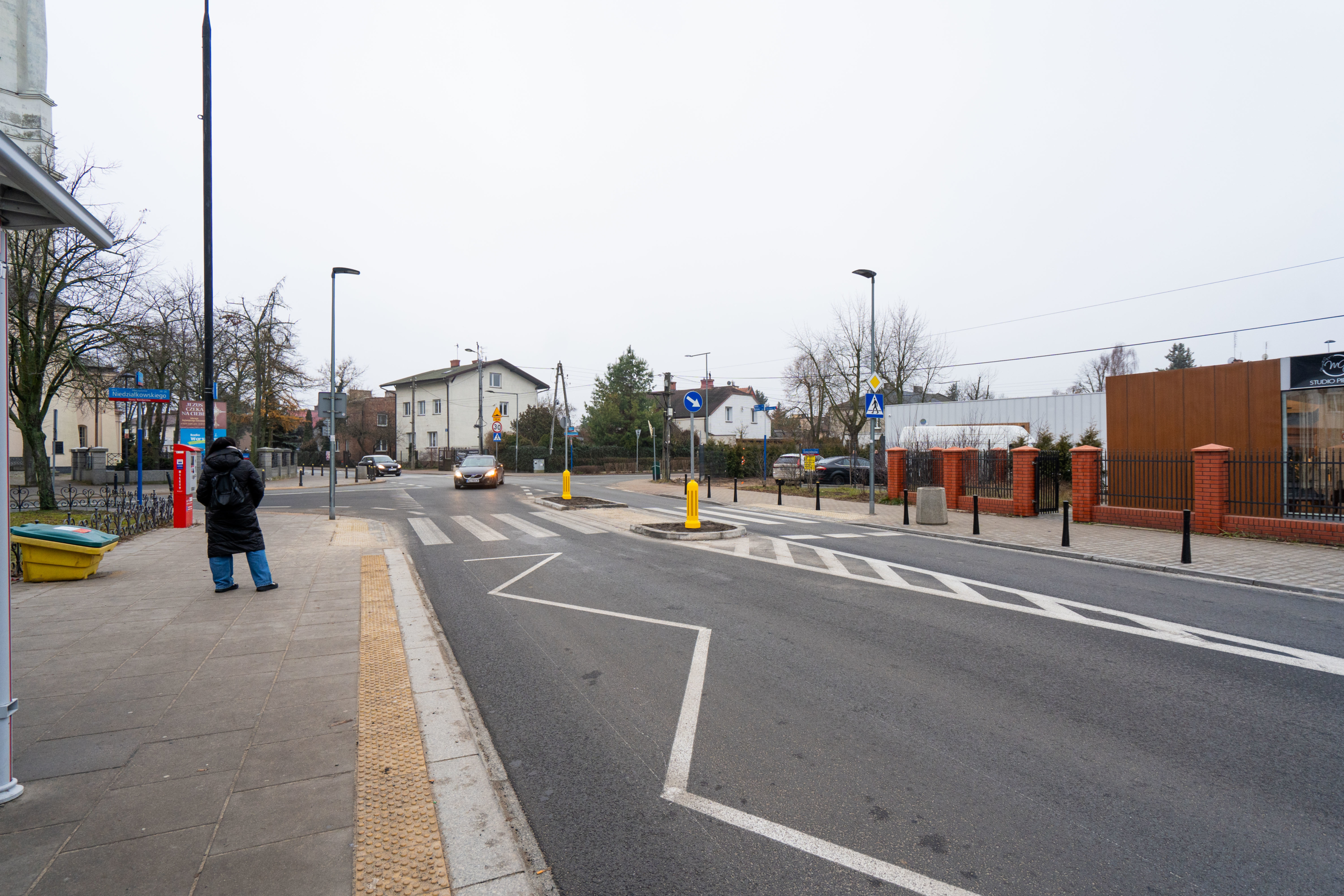 Bezpieczniej jest także po zachodniej stronie wspomnianego skrzyżowania. Było to też według audytu przejść dla pieszych bez sygnalizacji najniebezpieczniejsze z tych czterech przejść. Otrzymało najniższą możliwą ocenę – 0 w skali 0-5. Teraz jest na nim azyl, a także słupki uniemożliwiające parkowanie w rejonie przejścia. Przeprojektowaliśmy też nieco otwartą zatokę autobusową, która nie jest już osobnym pasem ruchu.