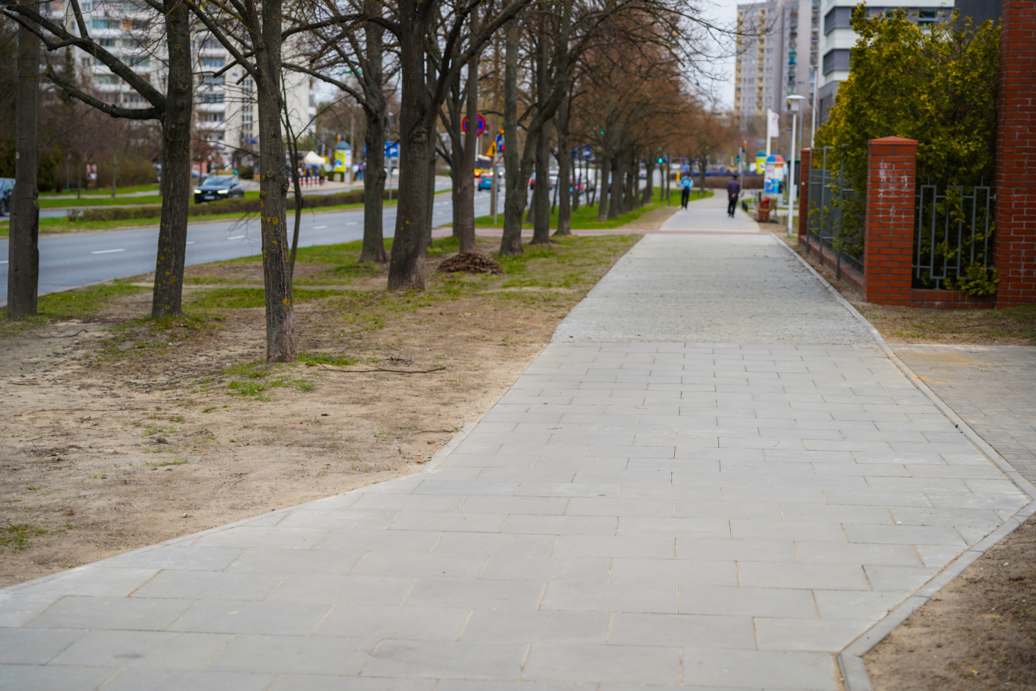 Remont chodnika prowadziliśmy na odcinku między ul. Dereniową a Al. Komisji Edukacji Narodowej (po stronie ratusza). Asfaltowa nawierzchnia może odrobinę cieszyła małych miłośników jazdy na hulajnogach czy wrotkach, ale dla innych pieszych nie była ani komfortowa, ani bezpieczna.