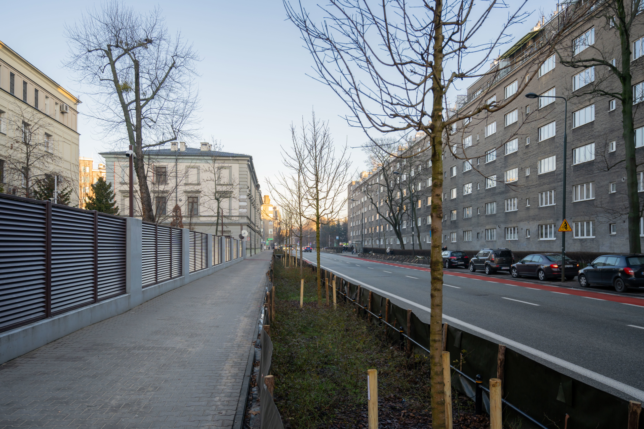 Nasze zeszłoroczne plany na zazielenianie stołecznych ulic objęły także Ochotę. Na warsztat wzięliśmy ul. Koszykową między ulicami Lindleya a Chałubińskiego. Zniknęło z niej 700 m kw. zbędnego betonu. Przede wszystkim przed budynkiem Służby Kontrwywiadu Wojskowego, gdzie w 2013 roku na wniosek organów państwowych postawione zostały betonowe pachołki. Teraz zamiast pachołków mamy tam byliny (rudbekia, kocimiętka, werbena, rozchodnik, szałwia, gaury) oraz krzewy (ostrokrzewy i róże), a także 16 nowych klonów.
