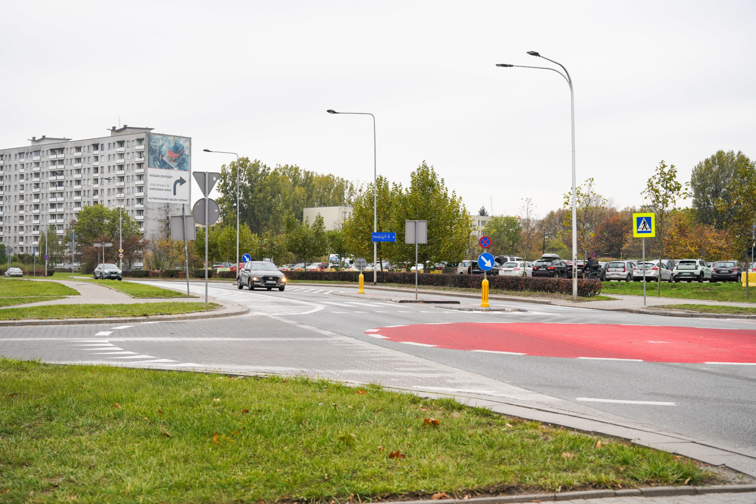 Przy nowym rondzie znajdują się trzy zebry. Te przez ul. św. Wincentego otrzymały w audycie przejść dla pieszych bez sygnalizacji ocenę 3. Audytorzy zwracali uwagę na ich długość – prowadziły przez trzy pasy ruchu. W ramach wyznaczania ronda zlikwidowaliśmy osobne lewoskręty na obu wlotach z ul. św. Wincentego. Przed przejściami zamontowane zostaną wyspy z prefabrykatu.