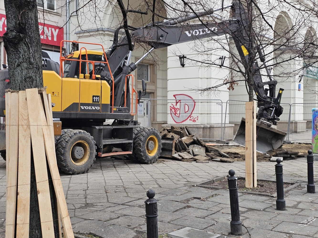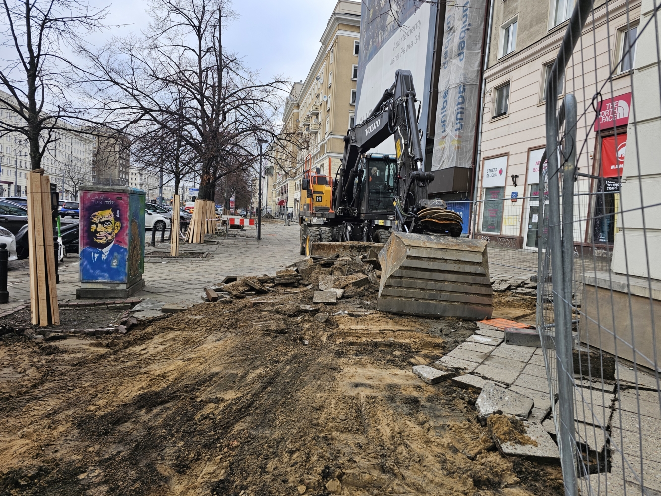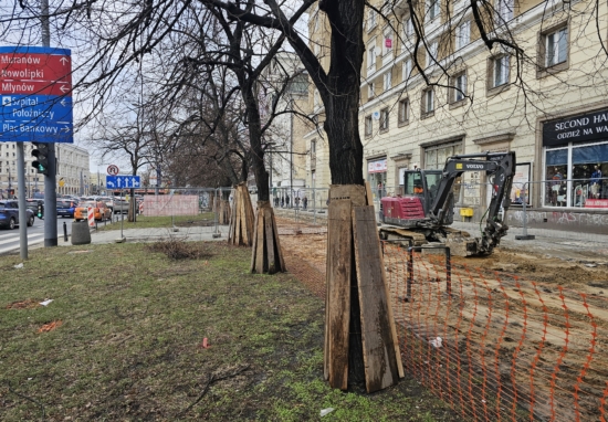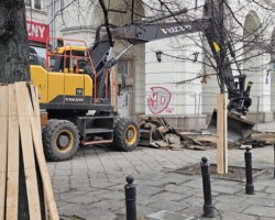 Niedawno ZDM ogłosił pierwszy tegoroczny przetarg na inwestycję obejmującą infrastrukturę rowerową – to budowa nowej trasy wzdłuż ul. Mickiewicza i na Placu Wilsona. Teraz z kolei rozpoczęła się pierwsza tegoroczna budowa. Wykonawca – firma Balzola – działa już w Al. Jana Pawła II odcinku między Al. „Solidarności” a ul. Elektoralną. Roboty rozpoczęły się błyskawicznie po nastaniu dobrej pogody. Na pierwszy ogień poszła rozbiórka fragmentów kilkudziesięcioletniego chodnika, który zostanie wyremontowany na całej długości inwestycji, czyli docelowo aż do Ronda ONZ.