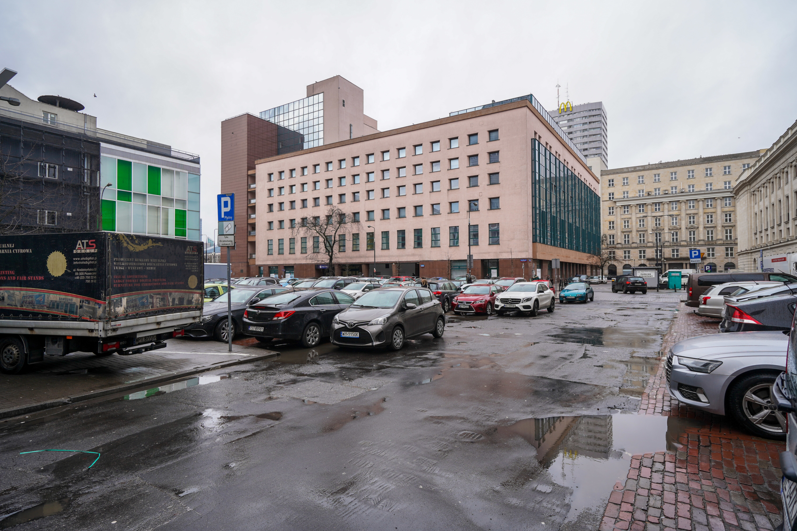 Plac Emila Młynarskiego. Z parkingu w Ogród Muzyki