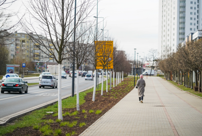 Prawy pas Alei Krakowskiej z nowym asfaltem