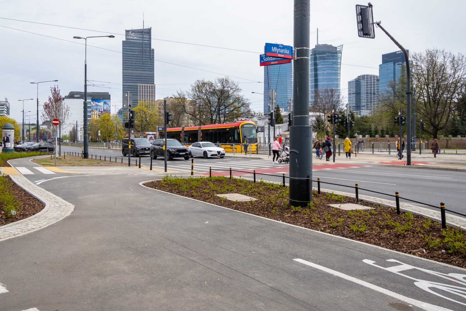 Przy okazji wolskiej inwestycji warto również wspomnieć o stołecznej sieci rowerowej. Skrzyżowanie Wolskiej i Młynarskiej stało się częścią rozrastającej się w okolicy infrastruktury dla jednośladów. Oprócz przejazdów rowerowych powstały tu drogi dla rowerów – po południowej stronie Wolskiej między skrzyżowaniem a Karolkową oraz wzdłuż Młynarskiej.