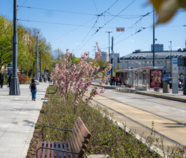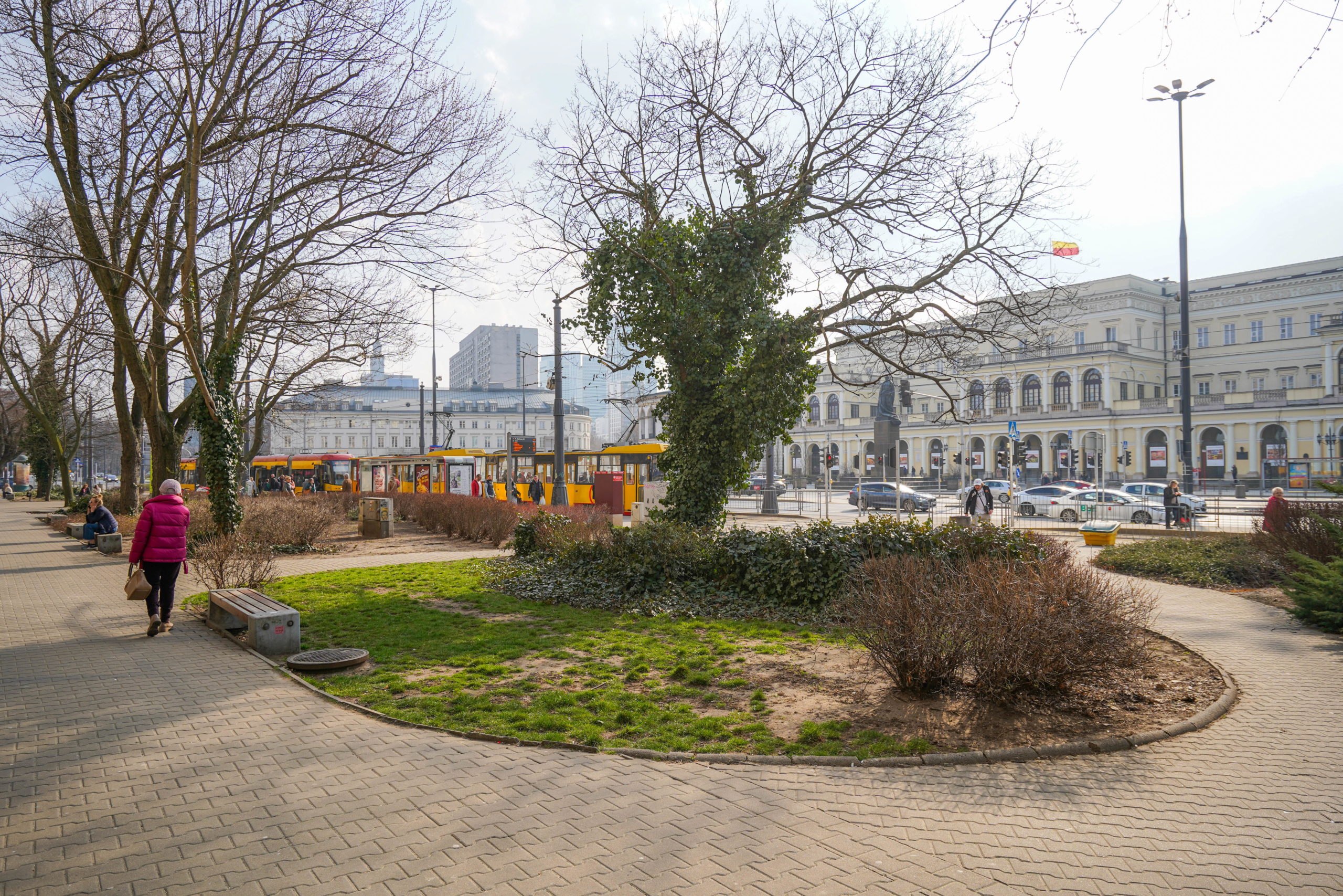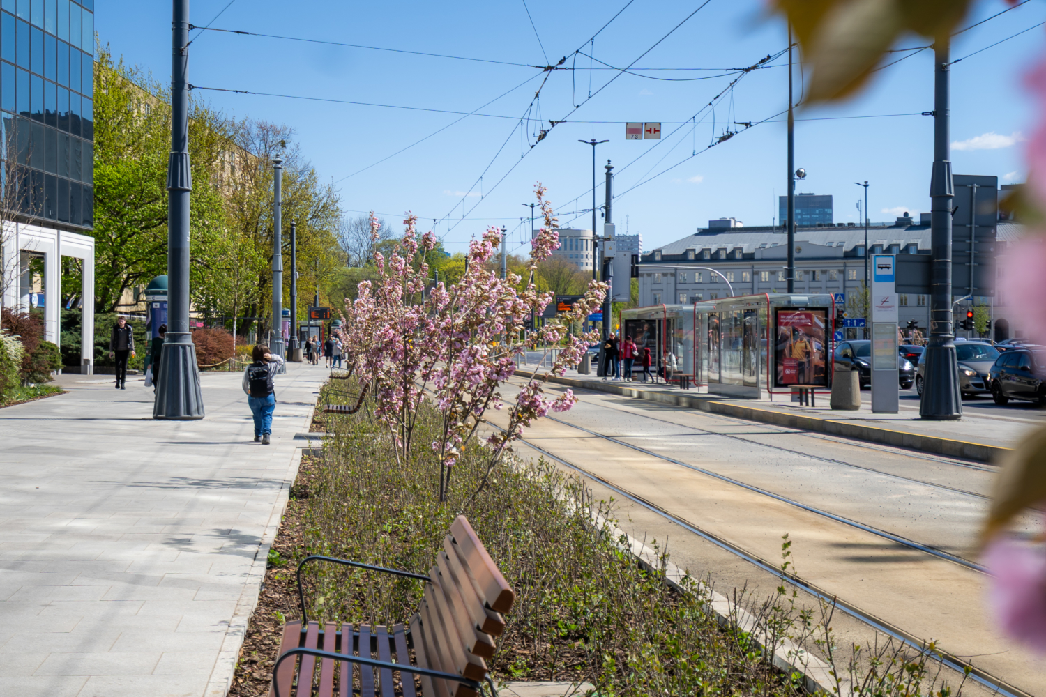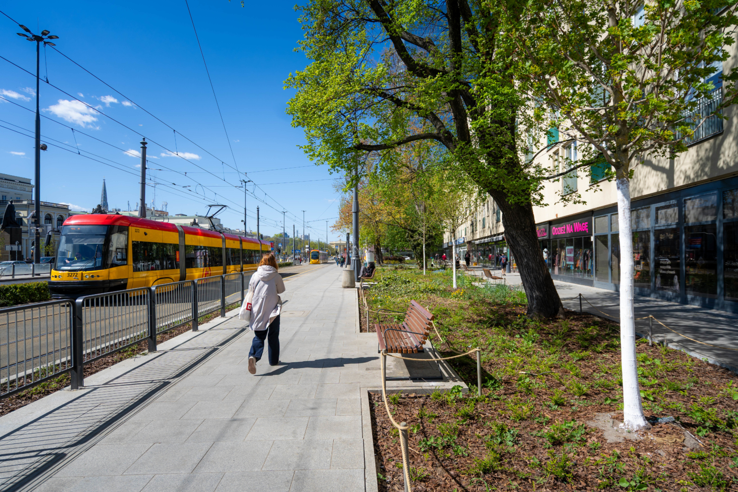 To nie są kosmetyczne zmiany. Zieleń robi na Placu różnicę. Wokół pomnika Stefana Starzyńskiego pojawiły się cztery platany, a przestrzeń uzupełniły róże – w tym polska, pomarańczowa odmiana „Prezydent Stefan Starzyński”. Wzdłuż torowiska posadziliśmy siedem wiśni piłkowanych ‘Kanzan’. Na skwerze przy Placu Bankowym 4 dosadziliśmy siedem drzew (klony, jesiony i czereśnię ptasią), a rabaty wzbogaciliśmy o hortensje, trawy ozdobne i byliny. Nową jakość widać także w małej architekturze – całości dopełniają pergole oraz meble miejskie. Przyjemniej jest tu przebywać. W sumie, w ciągu ostatnich trzech lat, na Placu Bankowym pojawiło się aż 66 nowych drzew.