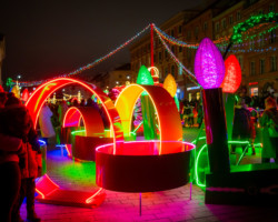 Wykonane przy użyciu diod Eco LED+ ozdoby przypominają telefon z tarczą, uliczny saturator, sklepową waga odważnikowa czy telewizor Belweder. Na ulice wróciły kultowe auta Warszawa i Syrena, a także motorower Ryś. Nie zabrakło oczywiście ogromnej, 27-metrowej choinki na pl. Zamkowym.