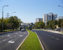 Niemało zmian zaszło też w organizacji ruchu. Między ul. Cynamonową a al. KEN zlikwidowaliśmy zbędny zanikający lewy pas na północnej jezdni. Teraz w jego miejscu mamy trawnik. Skróciliśmy także prawy za skrzyżowaniem z ul. Cynamonową. Dzięki temu powstała nowa zatoka autobusowa, a pozostała część pasa służy tylko do skrętu w prawo. Wprowadziliśmy też kilka poprawek na przejściach dla pieszych. Przeprowadziliśmy też szereg rozpłytowań, które nie tylko uwolniły przestrzeń od zbędnego betonu, ale i uporządkowały teren.