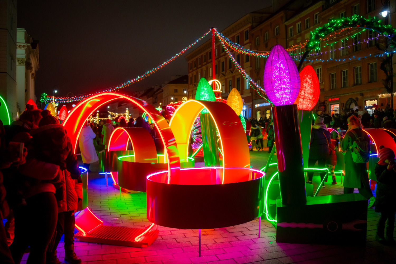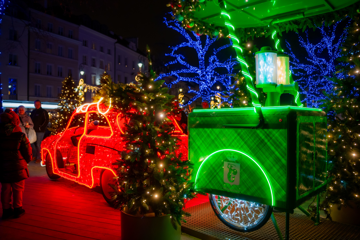 Wykonane przy użyciu diod Eco LED+ ozdoby przypominają telefon z tarczą, uliczny saturator, sklepową waga odważnikowa czy telewizor Belweder. Na ulice wróciły kultowe auta Warszawa i Syrena, a także motorower Ryś. Nie zabrakło oczywiście ogromnej, 27-metrowej choinki na pl. Zamkowym.