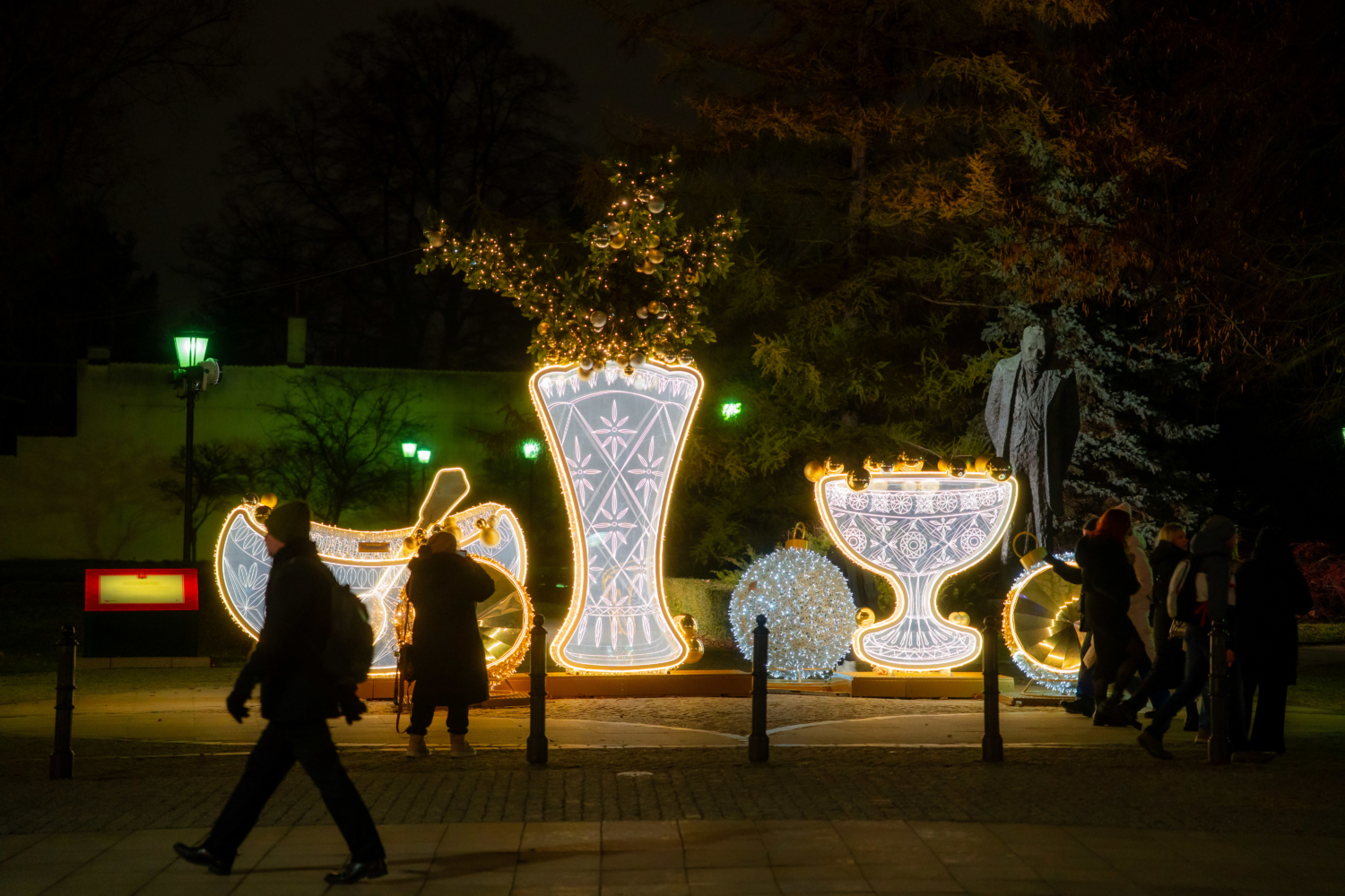 Przełom 2025 i 2026 roku to ostatni moment, by zobaczyć iluminację świąteczną na Trakcie Królewskim w obecnym wydaniu. Już na kolejne święta zdobić go będą zupełnie nowe dekoracje. Dziś jednak wciąż możemy podziwiać – jak w poprzednich dwóch latach – te nawiązujące do Warszawy z lat 50. i 60.