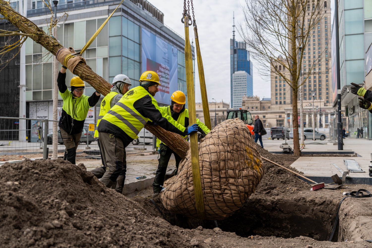 Prace przygotowawcze pod nasadzenia rozpoczęły się w pierwszej połowie marca, gdy po zimie odpuściły mrozy, a warunki pozwoliły wrócić do prac ziemnych. Przygotowane zostały doły oraz systemy stabilizujące. Sadzenie drzew będzie prowadzone sukcesywnie do połowy kwietnia. Drzewa sadzone są wiosną, kiedy znajdują się w stanie spoczynku wegetacyjnego. Dzięki temu nowe wiązy od pierwszych sezonów będą mogły z powodzeniem się przyjąć. W ramach całej inwestycji na przebudowanym terenie pojawi się aż 200 nowych drzew.