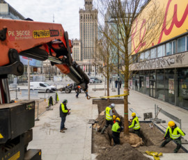 W kolejnym etapie zazieleniania pojawi się także niska roślinność. Prace obejmą ulice Złotą i Zgoda, a w zależności od harmonogramu również okolice Domu pod Orłami. Rozpoczną się w połowie kwietnia i potrwają do końca maja, uzupełniając nowe nasadzenia drzew.