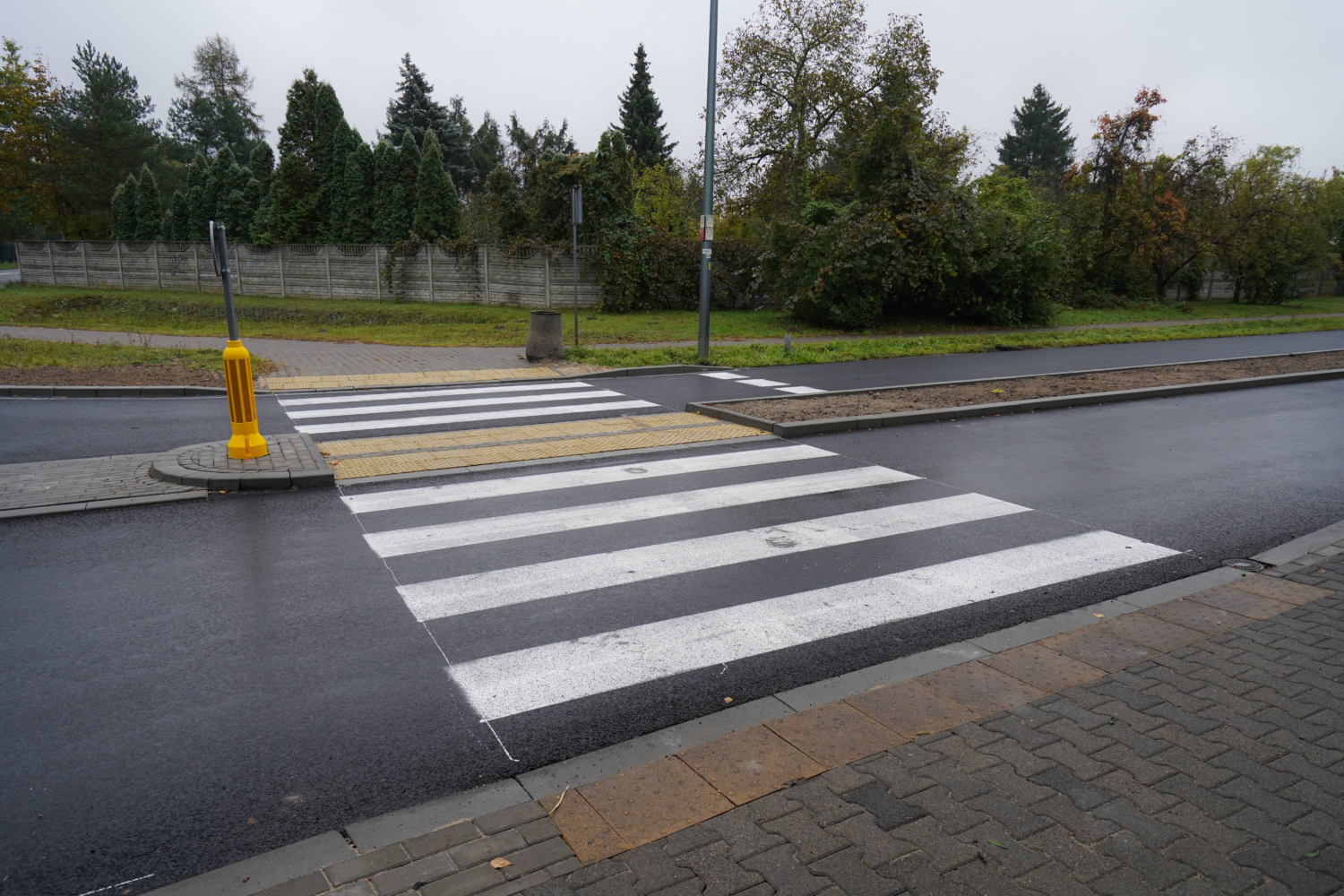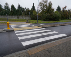 Progi zamontowaliśmy również na kolejnym przejściu – przy ul. Spychowskiej. Natomiast na zebrze przy skrzyżowaniu z ul. Kocjana – ocenionej w audycie na 2 – powstał zazieleniony azyl. Wybudowaliśmy go w miejscu dotychczasowego pasa do skrętu w lewo. W ten sposób skróciliśmy to długie przejście i uspokoiliśmy ruch. Tym samym zrealizowaliśmy zalecenia audytorów.