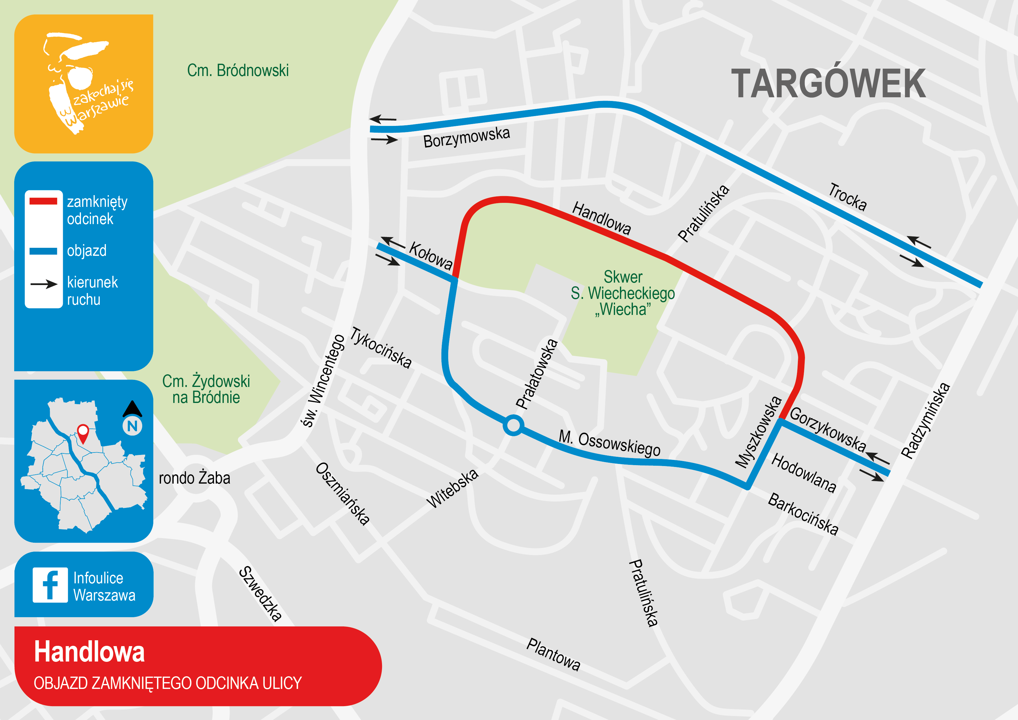 Połączenie z ul. Handlową stracą ulice: Lusińska, Pratulińska, Mokra, Szczepanika i Remiszewska. Objazdy zostaną poprowadzone ulicami: Myszkowska – Barkocińska – Ossowskiego lub ul. Trocką.