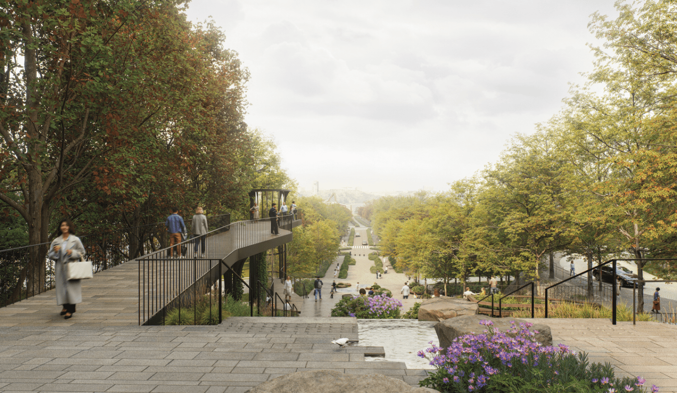 Przewodnią ideą projektu jest usprawnienie i uatrakcyjnienie połączenia mostu pieszo-rowerowego z Krakowskim Przedmieściem. Wyzwaniem dla uczestników konkursu było wytworzenie funkcjonalnego a zarazem atrakcyjnego połączenia górnego i dolnego tarasu skarpy warszawskiej. Projektanci musieli pogodzić wiele wymogów wynikających z ochrony konserwatorskiej, bliskości obiektów chronionych oraz geotechnicznych uwarunkowań skarpy.