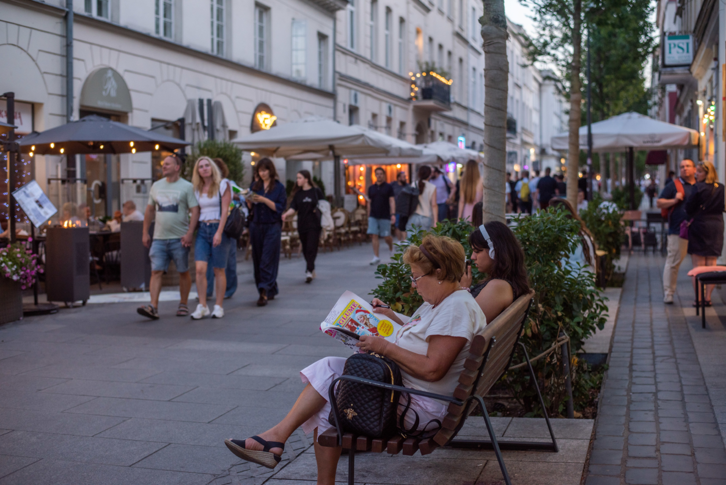 Przed przebudową obserwowaliśmy na ul. Chmielnej tłumy w nieciekawym i wysłużonym już otoczeniu. Dziś obserwujemy te same – a nawet większe – tłumy chętnie korzystające z uroków odnowionej ulicy. Miejskie życie toczy się tam dalej. Tyle że w dużo przyjemniejszej przestrzeni, która zachęca do spędzania w niej czasu. Widać to zwłaszcza weekendami, podczas których zaobserwowaliśmy wzrost ruchu pieszych w godzinach popołudniowych i nocnych.