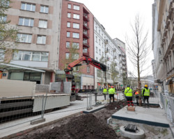 Nowe drzewa uzupełniają istniejące już nasadzenia na ul. Zgoda. Wiosną posadziliśmy tu 11 blisko 9-metrowych wiązów. Dzięki posadzonym właśnie kolejnym 14 wiązom, powstaje kolejny szpaler, wieńczący etap sadzenia drzew na tej ulicy.