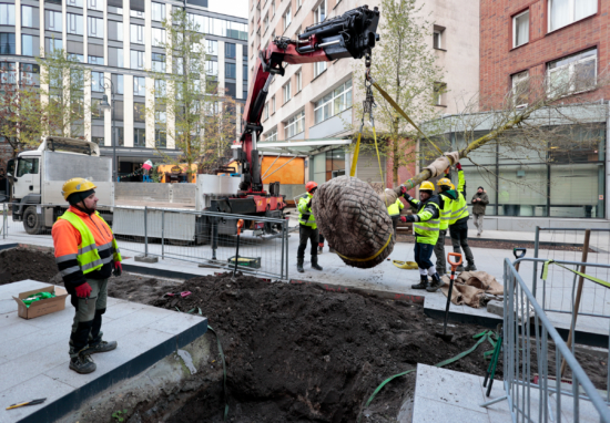 Nowe drzewa uzupełniają istniejące już nasadzenia na ul. Zgoda. Wiosną posadziliśmy tu 11 blisko 9-metrowych wiązów. Dzięki posadzonym właśnie kolejnym 14 wiązom, powstaje kolejny szpaler, wieńczący etap sadzenia drzew na tej ulicy.