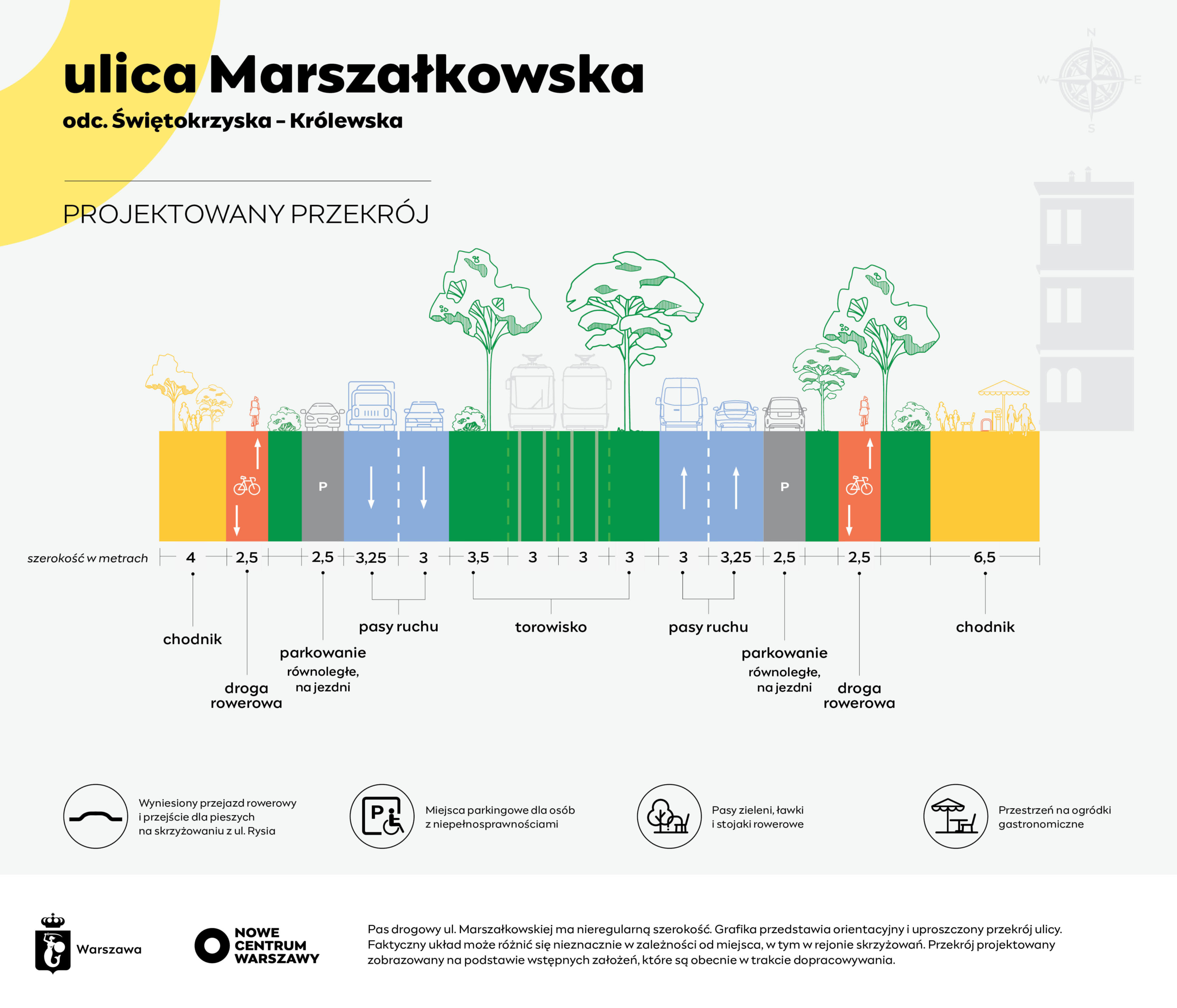 Przygotowywana jest też dokumentacja projektowa dla odcinka między ulicą Nowogrodzką a placem Konstytucji. Marszałkowska fragment po fragmencie staje się miejską arterią ze szpalerami drzew, wygodną i bezpieczną dla wszystkich jej użytkowników.